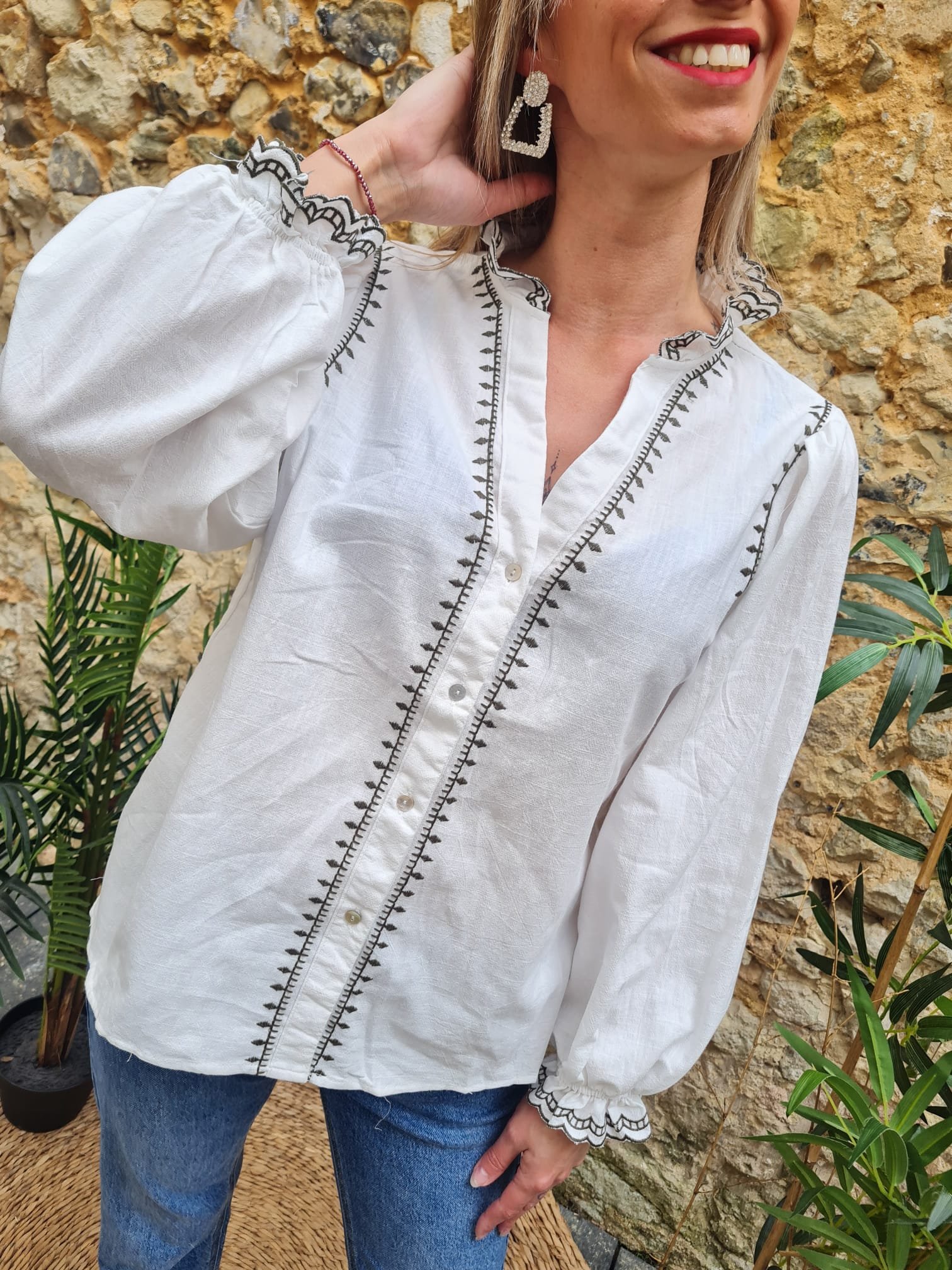chemise avec brodés kaki