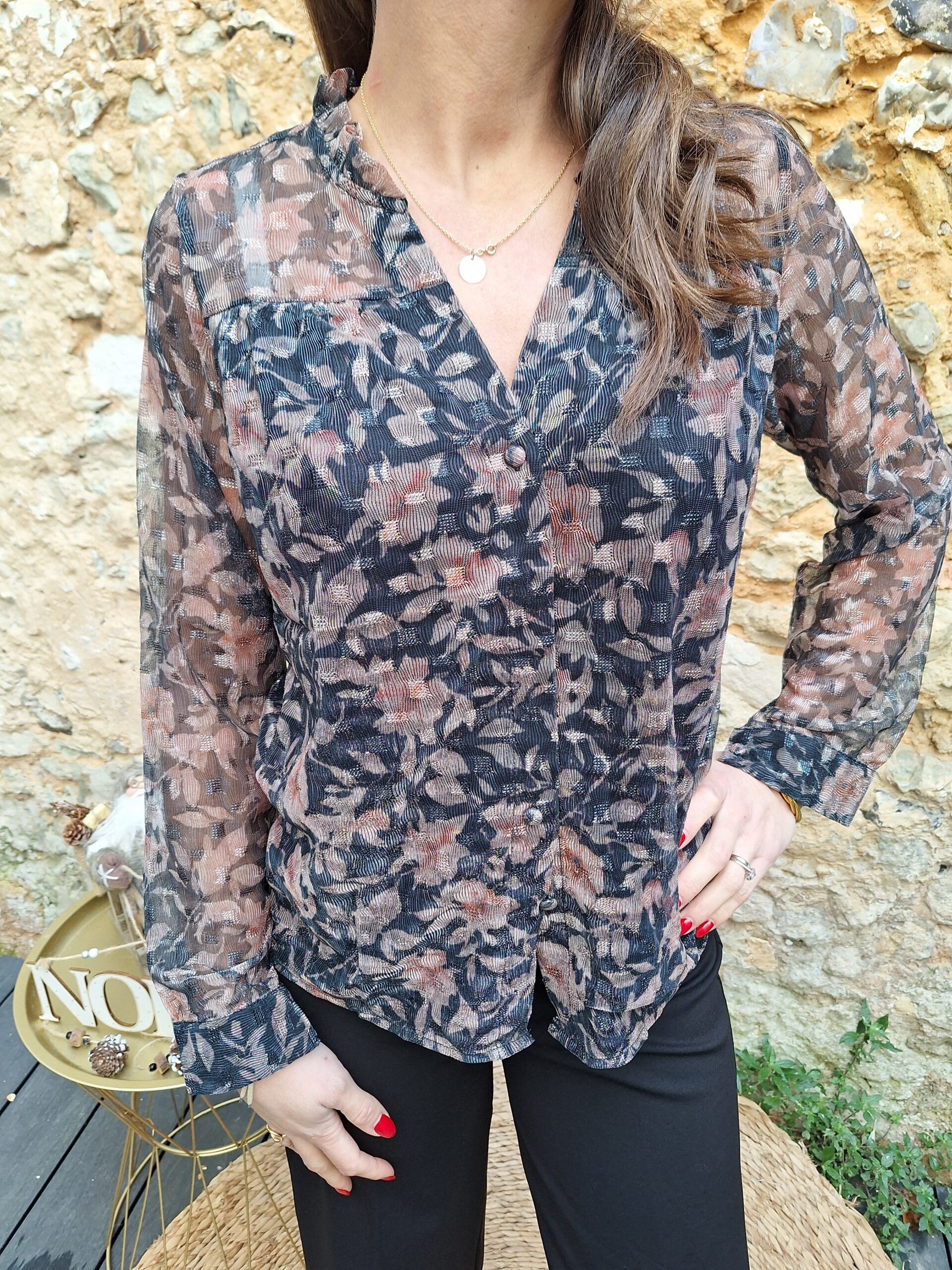 chemise pailletée marron